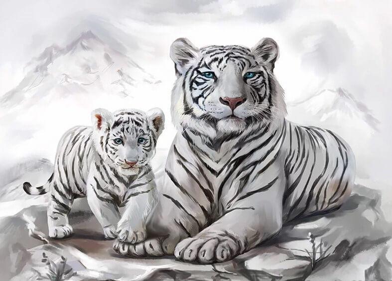 White Tiger with Little Cub